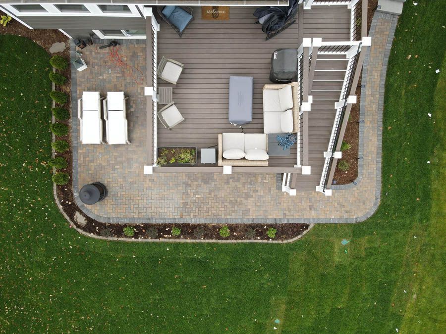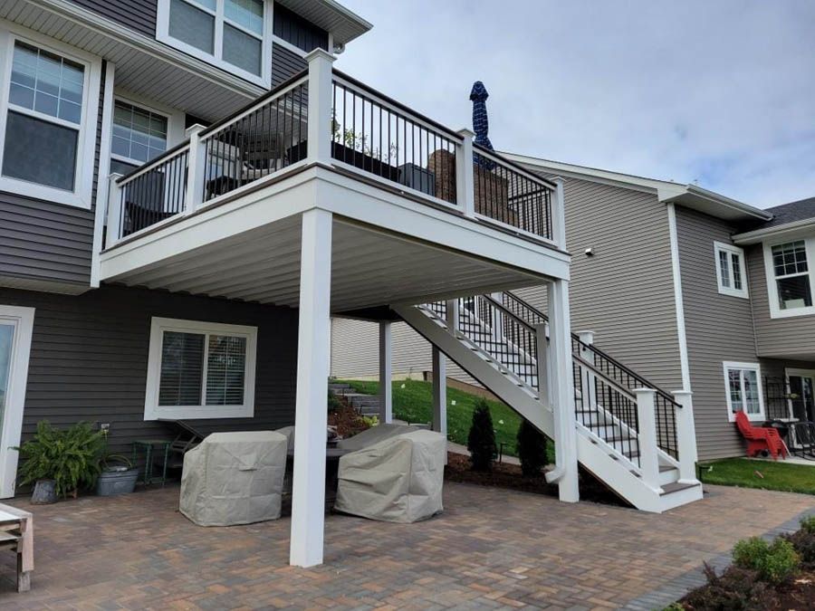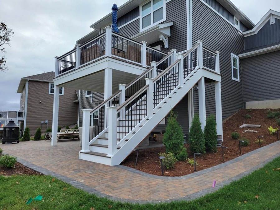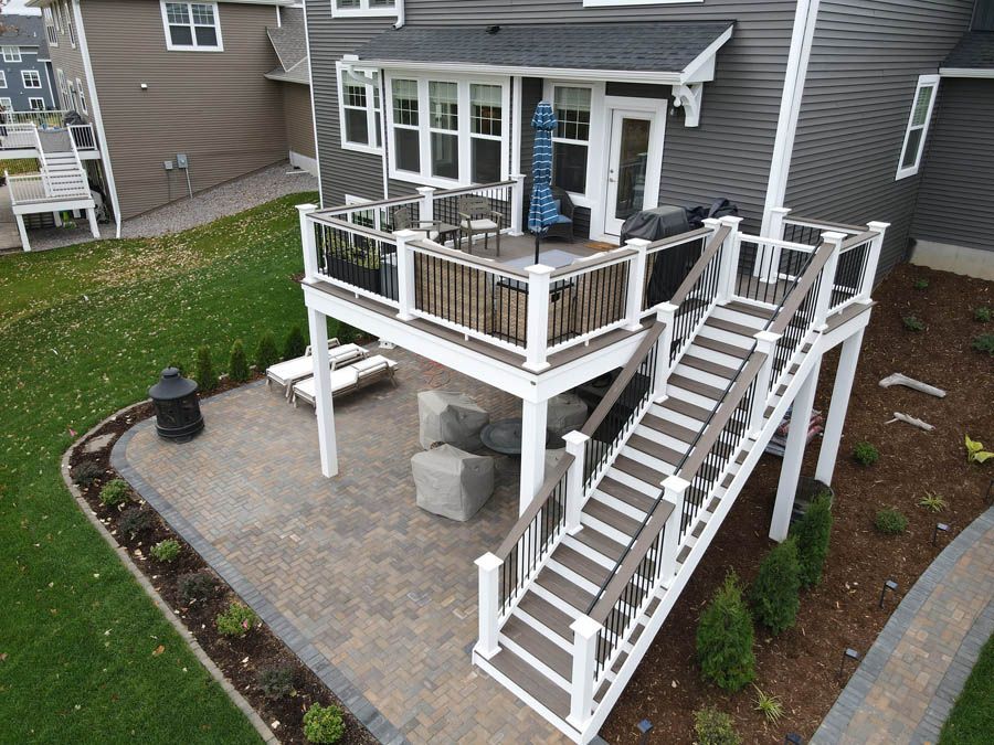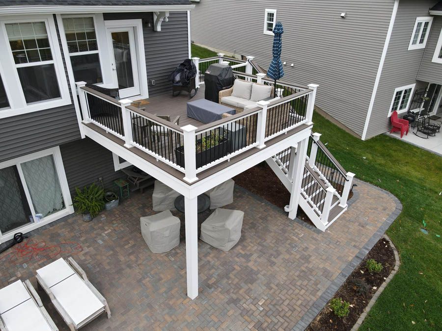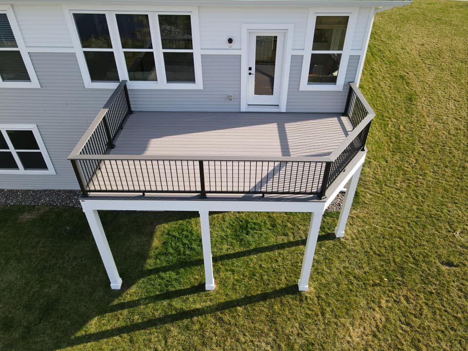 TimberTech Classic Composite railing with aluminum balusters and drink rail attachment.