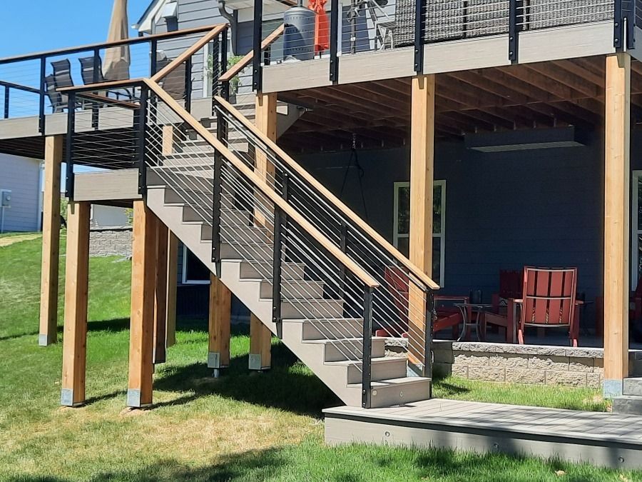 Cedar support posts, stair riser lights, IPE hardwood drink rail